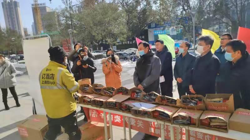 11月12日,按照省人社厅统一部署,市人社局与省人社厅联合开展了“寒冬送温暖 骑手共成长”关爱外卖骑手活动。省人社厅副厅长谷孝红、市人社局二级巡视员乔佐文等来到浑南区一家平台公司的站点,为外卖骑手带来了冬季防寒保暖用品等慰问品,并与外卖骑手举行座谈,了解他们风雪严寒天气劳动保护情况、接单、收入情况,面对面了解他们的诉求,听取他们的意见建议。