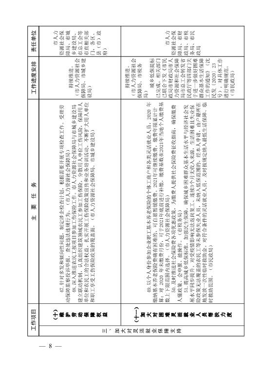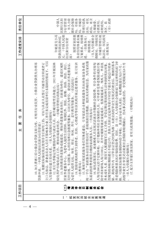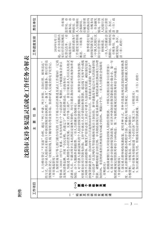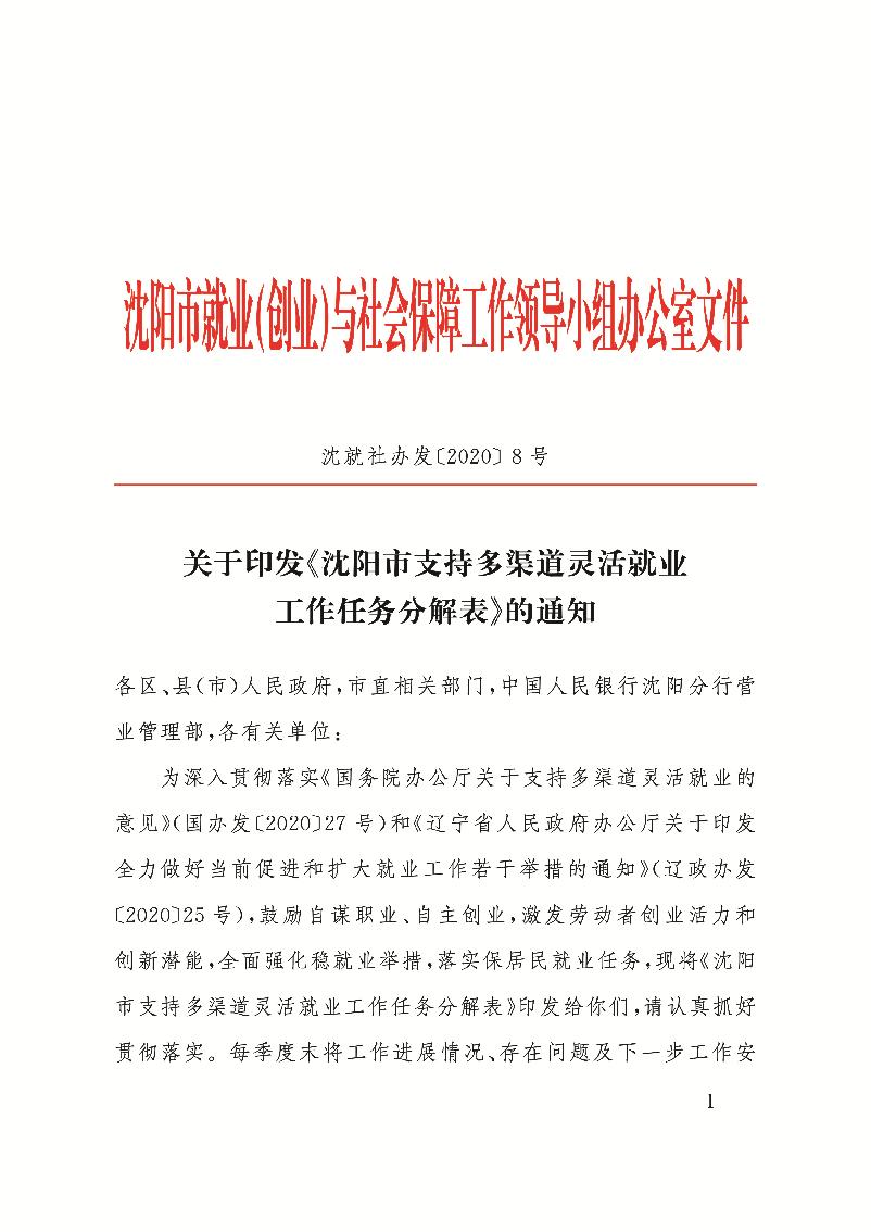 关于印发《沈阳市支持多渠道灵活就业工作任务分解表》的通知