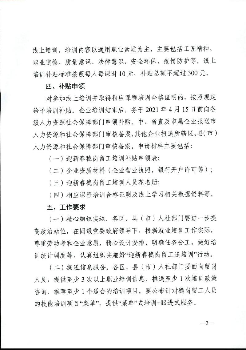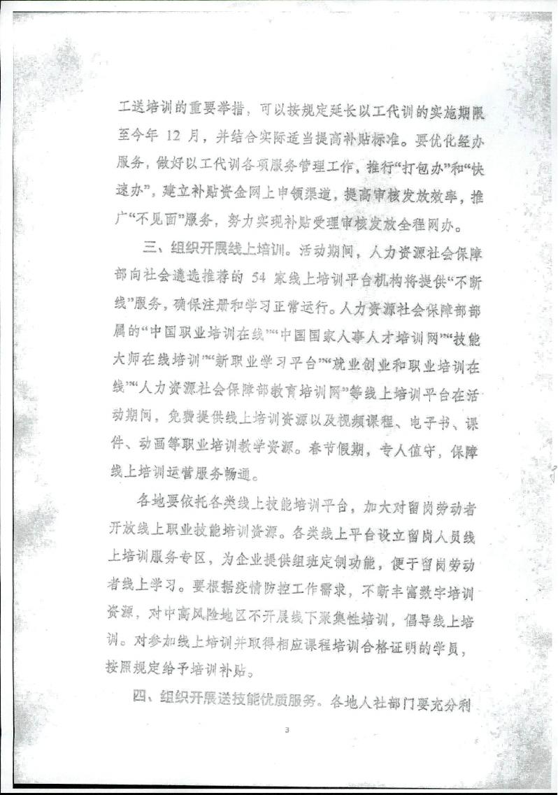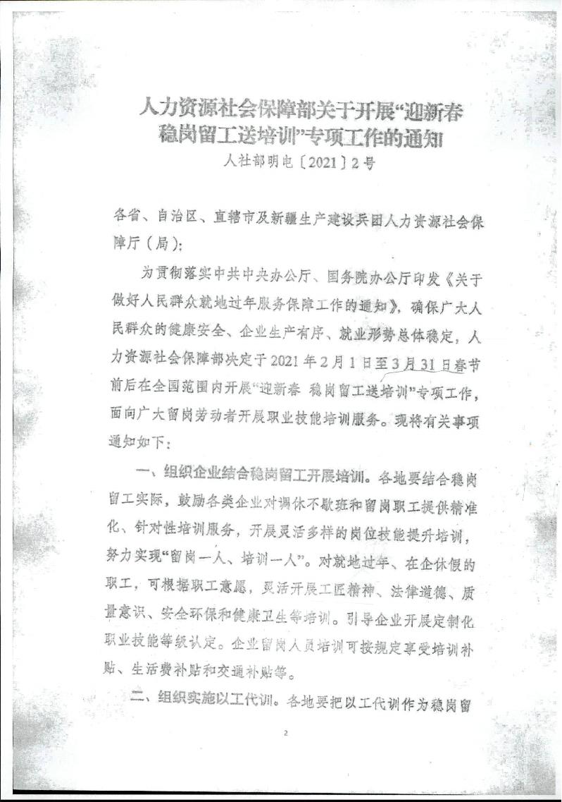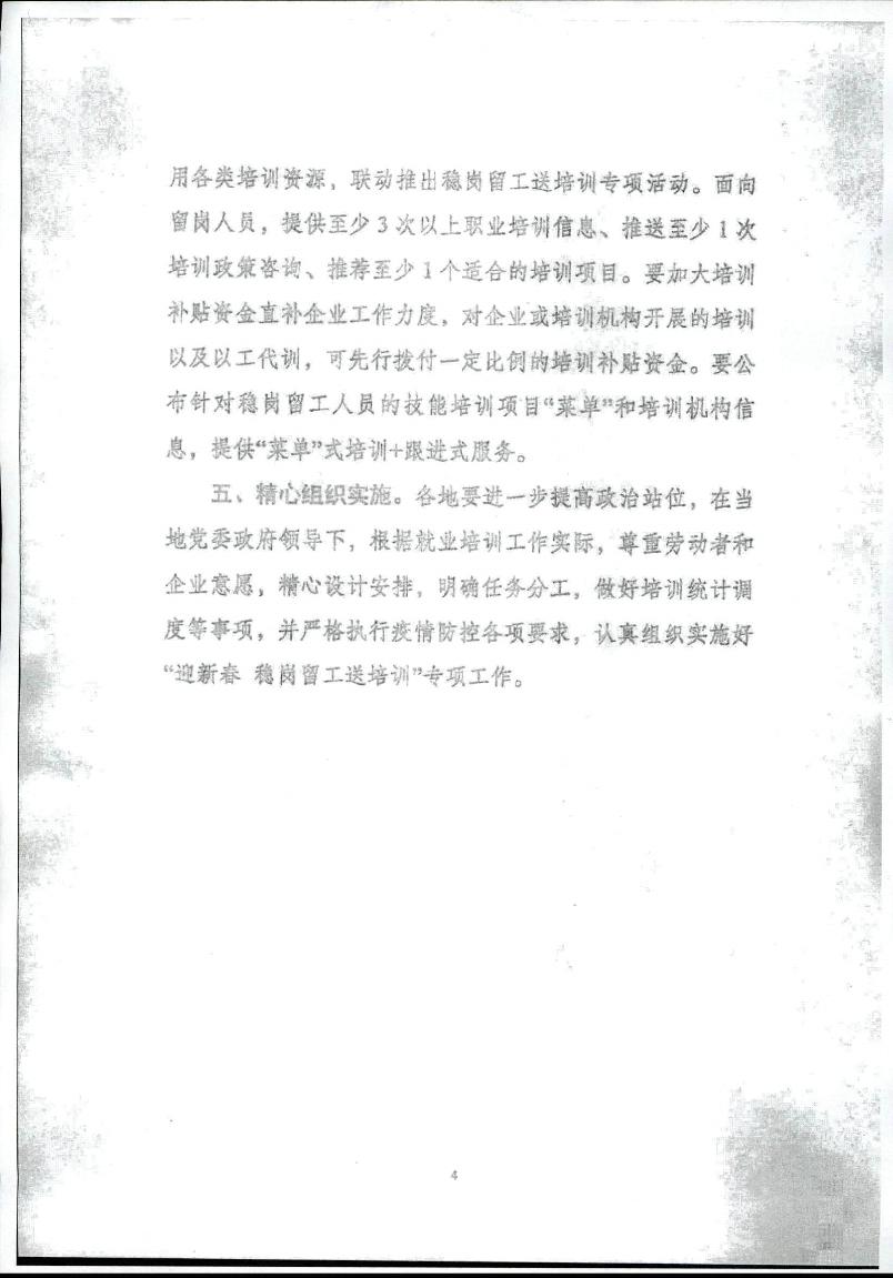 关于开展“迎新春稳岗留工送培训”专项行动的通知