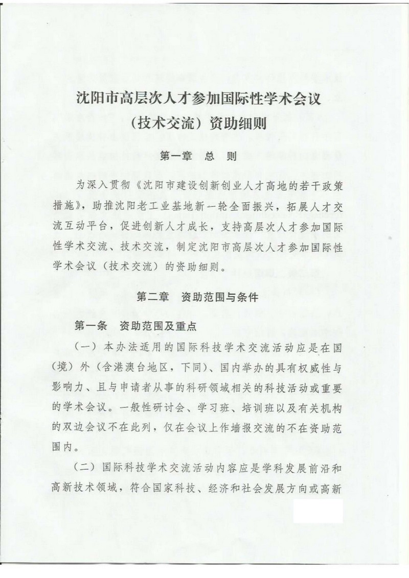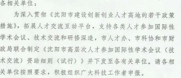 附件:1.沈阳市高层次人才参加国际性学术会议(技术交流)资助细则