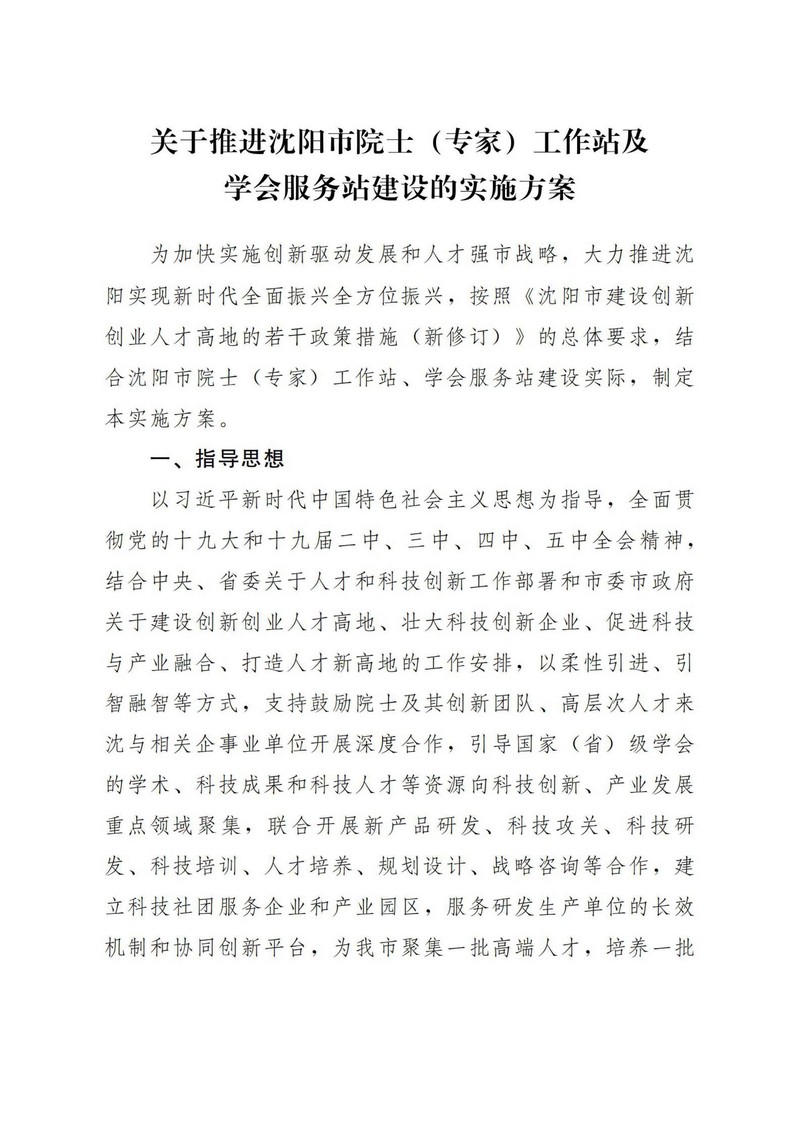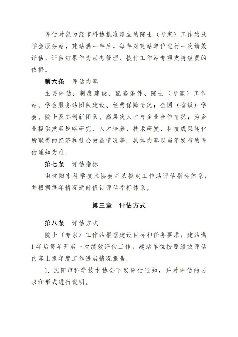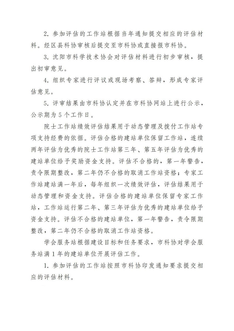 沈阳市院士(专家)工作站及学会服务站评估办法