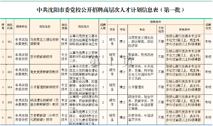 (六)岗位所需要的其他条件,详见《中共沈阳市委党校2026年公开招聘高层次人才计划信息表(第一批)》。